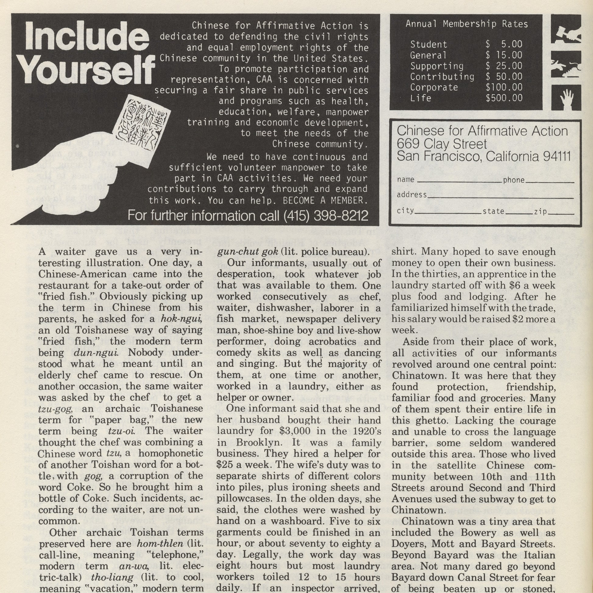 50 pages, 21.5 × 27.8 cm. Issue "Asian American Studies" from June 1973. Published by Basement Workshop. In English. Condition: Good, signs of wear on the edges.