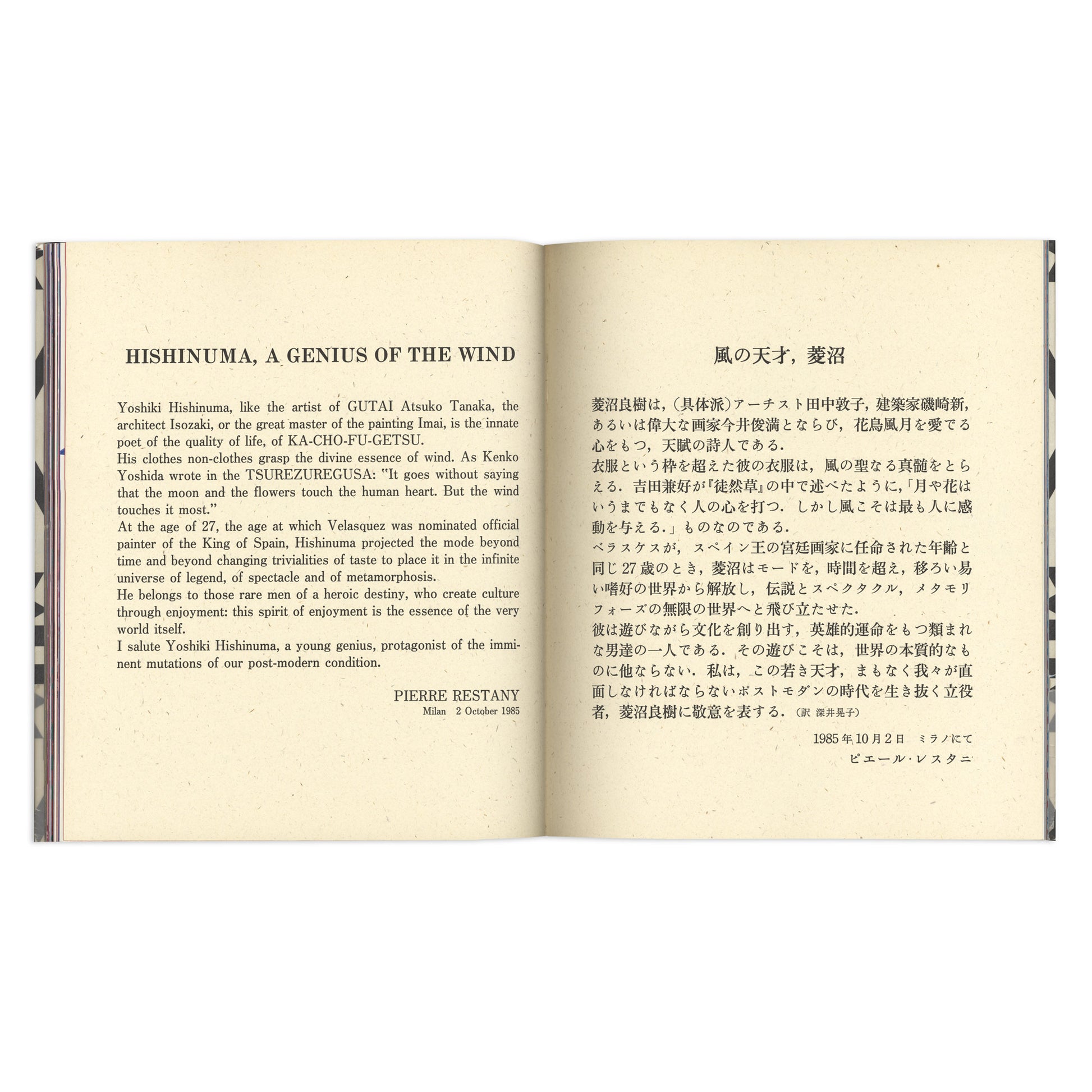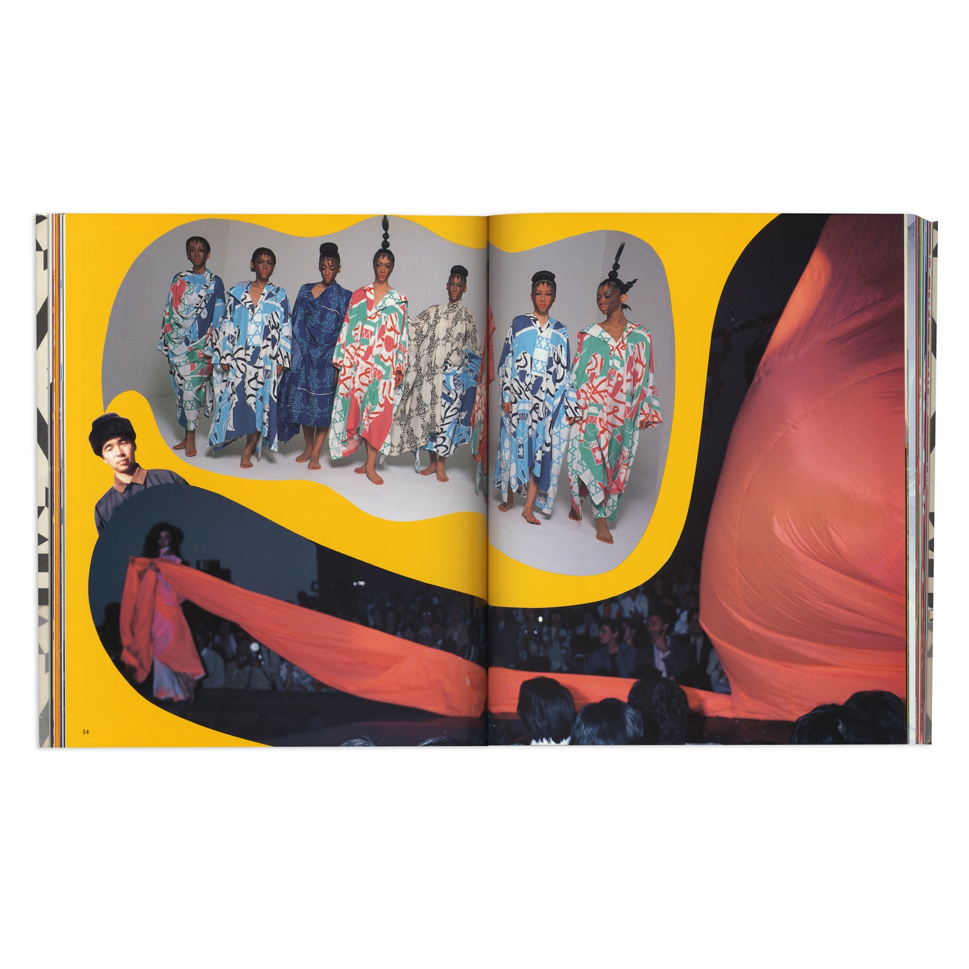 The outstanding Clothes by Yoshiki Hishinuma. In the 1980s, after working at Issey Miyake, Yoshiki Hishinuma opened his own studio. When designing his eponymous line, he could not find the textile materials he envisioned. Rather than working with manufacturers, Hishinuma began experimenting with natural and chemical processes to alter the finish and form of textiles, producing uniquely shaped clothes especially using wind and air – called Kite Clothes and Air Clothes. This exceptional book unfolds the designer’s sumptuous works and is also incredibly produced: stunning prints with lavish colours, impactful full-bleed spreads, different paper materials, gatefolds, and even die-cut elements! Extremely rare.
